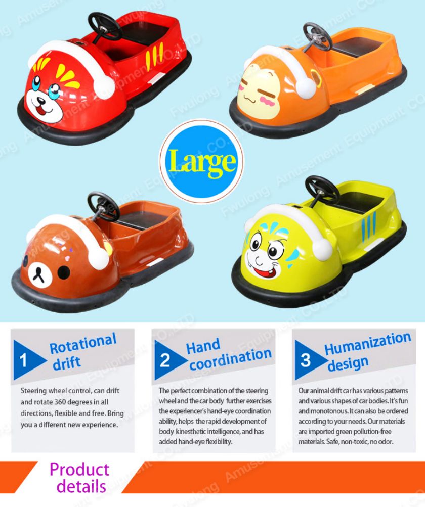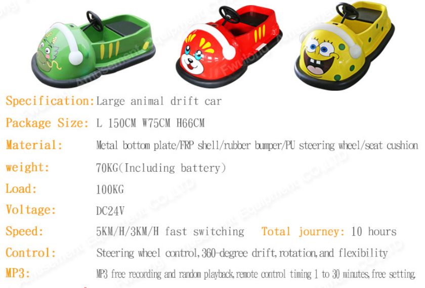 1、Kid's battery is DC12-volt 33Ah*2, and the large Drift Bumper Car is DC12-volt 20Ah*2, which is very convenient and quick to make profits.